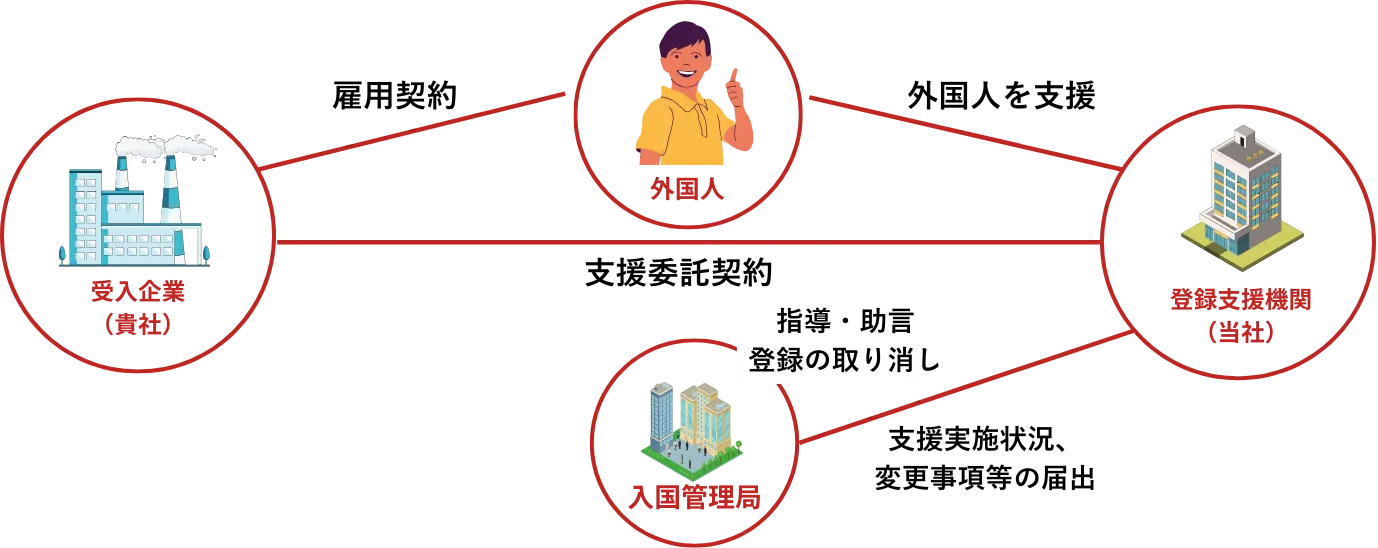 登録支援機関は、特定技能外国人の受入れをサポートするために法務省に登録された機関です。生活や就労の支援、企業との調整、書類手続きの代行など、外国人が安心して働ける環境づくりを行います。